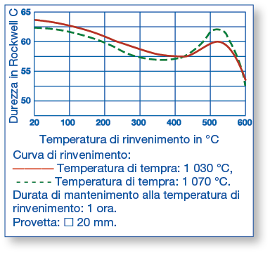 - Due rinvenimenti successivi: primo rinvenimento a 520 °C, secondo rinvenimento a 580°C.