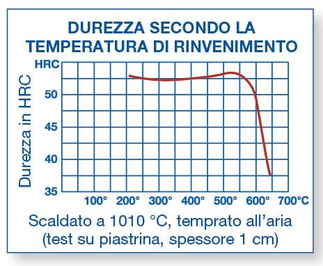 - Per ottenere la durezza massima, effettuare due rinvenimenti a 550 °C.