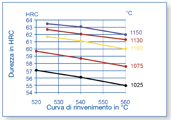 Secondo e terzo rinvenimento a partire da 560 °C a seconda della durezza desiderata.