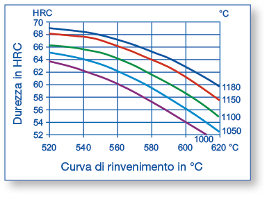 Secondo e terzo rinvenimento da 560°C a seconda della durezza desiderata.