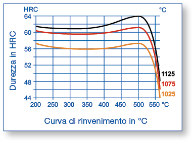 Tra 500 ° C e 525 ° C per applicazioni seguite da rivestimenti in PVD (primo rinvenimento 500 °C).
